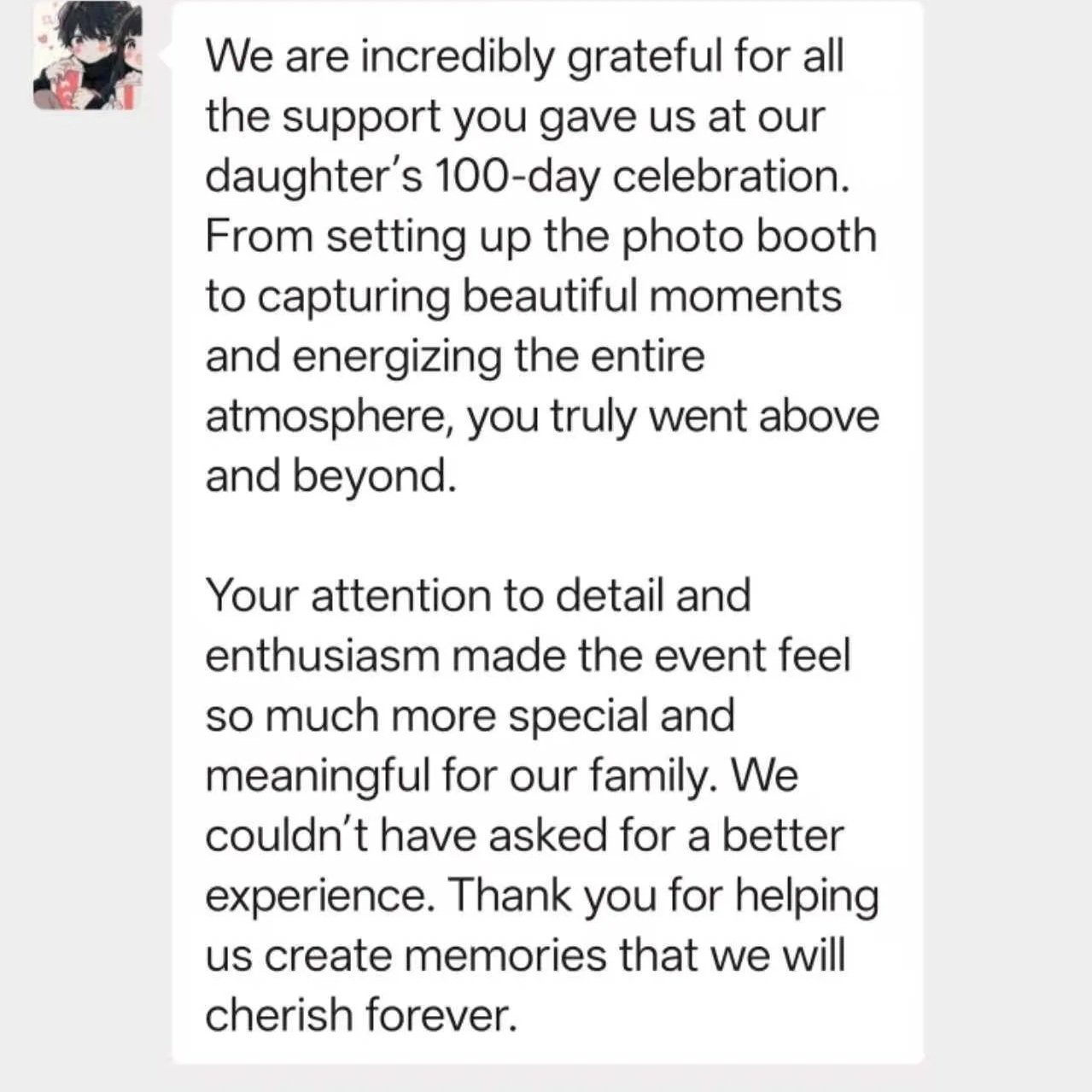 “We almost went with a standard photo booth, but the newspaper print changed everything. Our guests were obsessed — half of them had never seen anything like it. Three months later, people are still talking about it.”